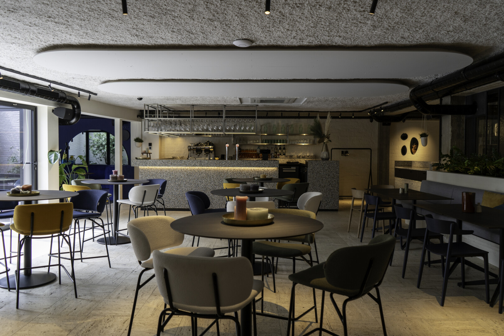 Deze ruimte biedt plaats aan 75 personen in een zittende opstelling of 120 in een staande opstelling. Bij mooi weer kunnen alle ramen open en wordt het terras een heerlijke extra zitgelegenheid. We passen de opstelling graag aan op basis van jouw behoeften, met een levendige mix van tafels die voor een speelse sfeer zorgen.